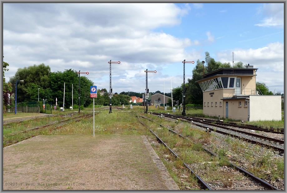 ehemaliges Bahnwärterhaus nebst der üblichen Schrankenausstattung empfängt mich. Aber am Bahnhof sollte es interessanter sein, denke ich. Nun ja, das Empfangsgebäude atmet nicht