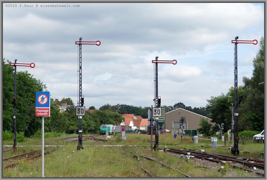 Der erste Güterzug reißt mich aus meinen Gedanken! Die SNCF-Diesellok 475 128 schleicht in den Bahnhof, am Zughaken eine mitgeschleppte 186'er