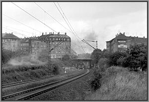 unter der Unterführung der Kirschbergstraße hervor und erreicht nun in einer weiten Kurve die Elsteraue. "Freie Fahrt" zeigen die Signale der