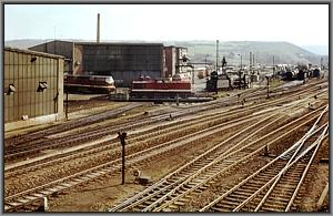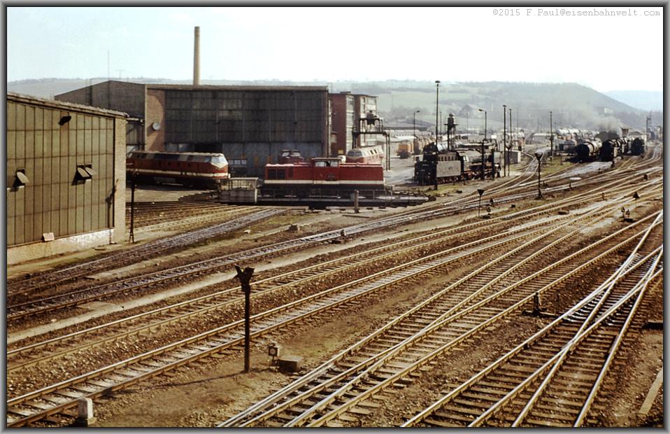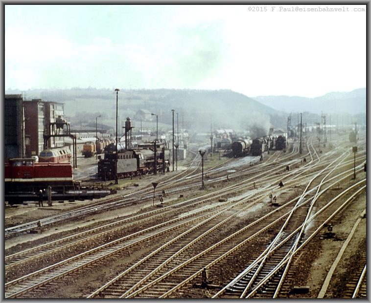 ein großer Teil des Bahnhofs überblicken. Noch dampfen hier die Öler der Baureihen 01.5 und 44, auszumachen sind aber nur die Kohlelok 01 2114 und eine