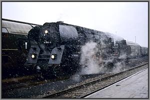 Unsere 01 kann das aber nicht erschüttern, gemächlich rangiert sie an ihren Zug. |