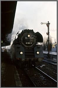 im Planeinsatz verkehrende Schnellzuglok. Zwei unauffällige Personen aus der (rechts im Bild) danebenliegenden Stasi-Kreisverwaltung bitten mich freundlicherweise in