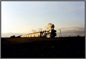 wachsen immer weiter, die Schuhe werden schwer wie Blei. Aber dann, kurz vor Sonnenuntergang: Der Zug nähert sich, in schneller Fahrt rauscht er vorbei, von der Sonne angeblitzt! |