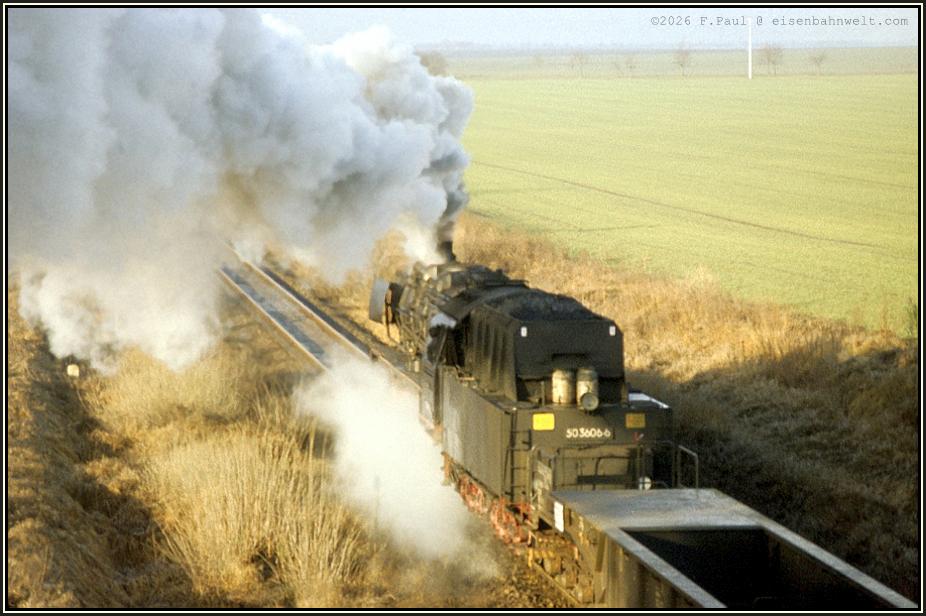 Am Morgen des 22.02.1988 rollt die Oscherslebener 50 3606 mit Ng 61744 von Magdeburg-Buckau nach Halberstadt in das Überholgleis