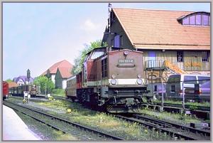 So hat am 30.04.2004 diese Aufgabe 199 861 inne und rangiert gerade einen Personenwagen durch den Bahnhof. Später rollt die in ihrem Aussehen etwas gewöhnungsbedürftige