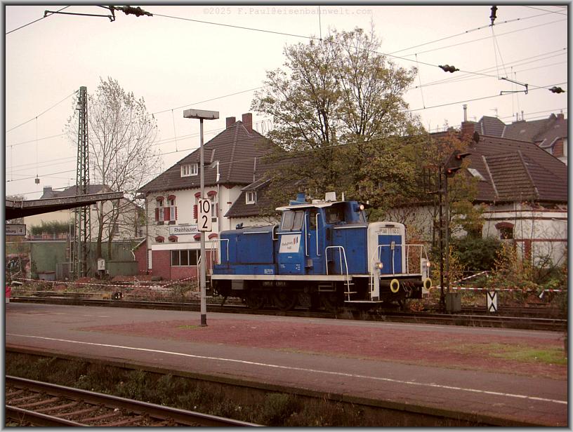 Die ehemalige DB-Lok 360 152 ist bei DuisportRail gelandet. Am 24.11.2005 hat sie Rangierdienst auf der Hafenbahn Rheinhausen.