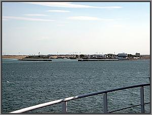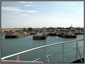 Näher und näher kommt nun die Küste mit dem ausgedehnten Fährhafen Putgarden, garniert von unzähligen Windrädern in seiner Nähe. Die umfangreichen Fähranlagen