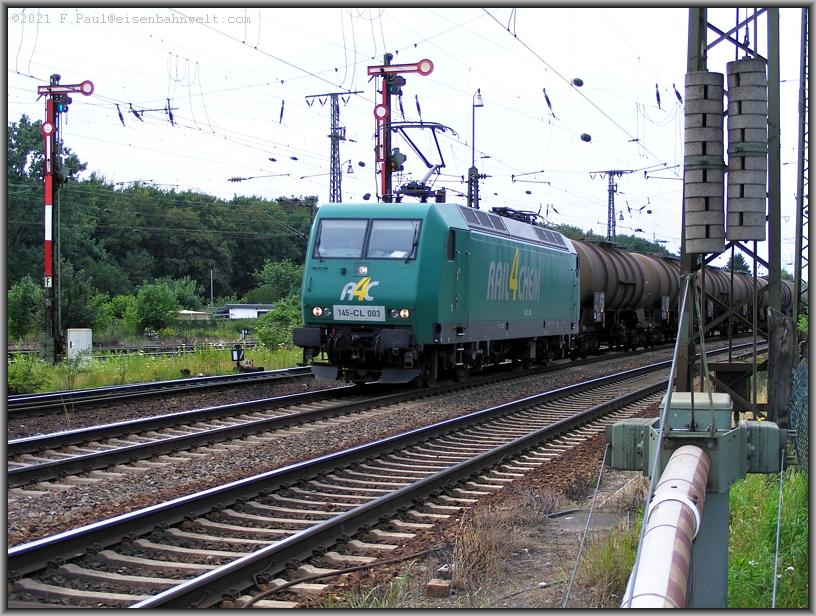 Ludwigshafen BASF befördert. So auch am 12.07.2007, als Lok 145-CL 003 mit dem fast täglichen Dgs 41549 (Rotterdam-Ludwigshafen) durch Gremberg Nord rollt.