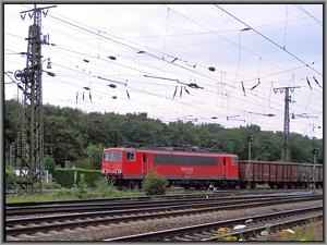Gemächlich rollt 155 157 am 12.07.2007 mit FR 52065 von Wanne-Eickel in Gremberg Nord ein. Dieser Zug ist Zubringer von Frachten aus dem "Ruhrpott" nach Gremberg zur Weiterleitung. |