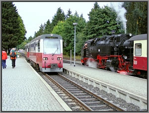 Wernigerode und der gerade als P 8973 aus Gernrode einfahrende Langeoog-Triebwagen 187 012 zurück zur Selketalbahn. So sehen Sternanschlüsse aus! Und sie funktionieren auch ..... |