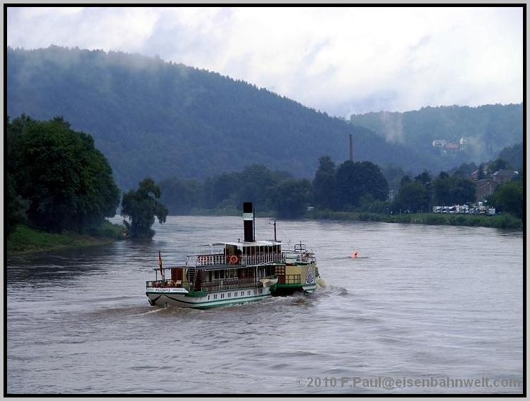 Am 12.08.2010 ist der Fahrplan bei der Sächsischen Dampfschiffahrt wegen des Elbehochwassers weiterhin etwas aus den Fugen geraten. Der Steg in Bad Schandau ist weiterhin gesperrt,