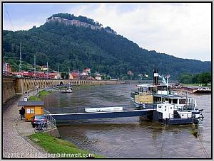 so daß der Personendampfer "Pillnitz" in Königstein auf seine Rückfahrt nach Pirna warten muß. |