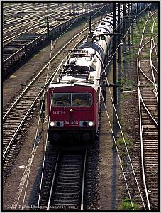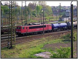 Langsam setzt sich 155 070 am Abend des 20.04.2011 an einen im Riesaer Rbf abgestellten Kesselwagenzug.
