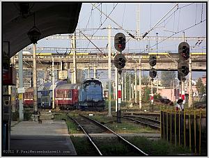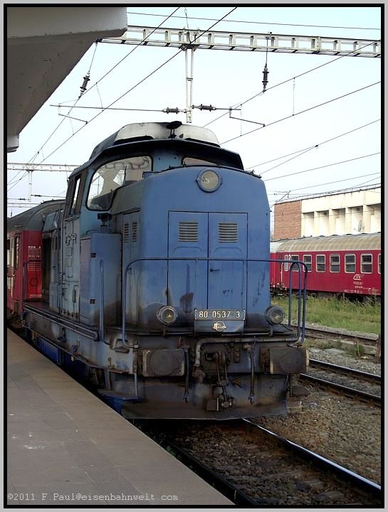 Taufrisch sieht sie nicht mehr aus, die Rangierlok von Cluj Napoca am 24.09.2011. 80 0537 schiebt eine Gruppe von Reisezugwagen in Gleis 5. |