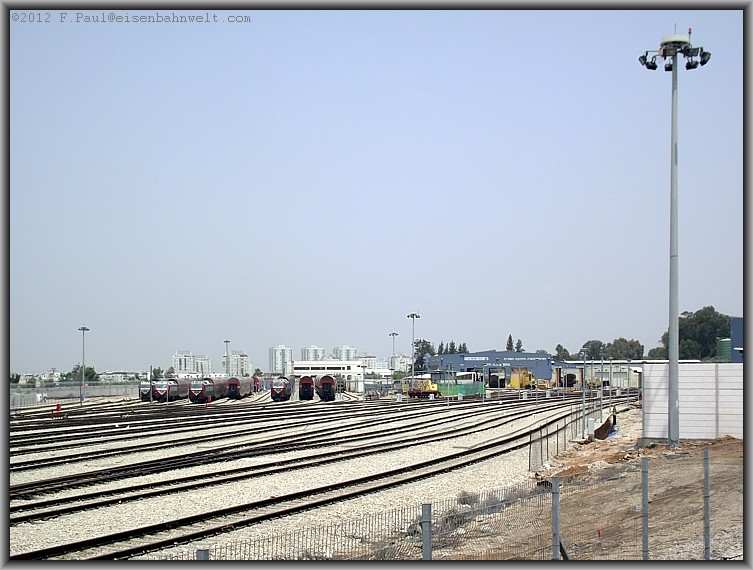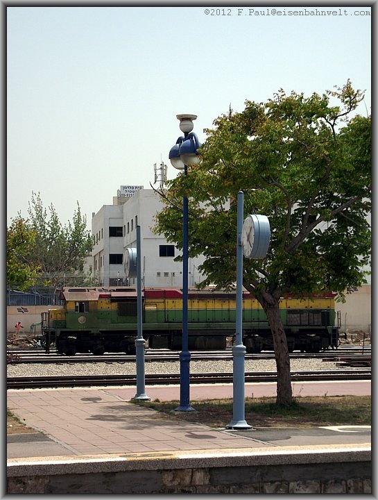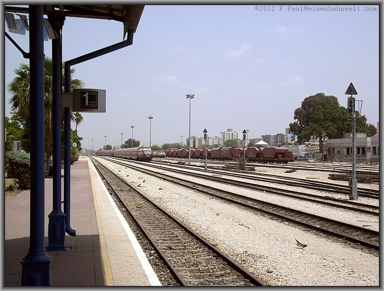 Ich kehre zum Bahnsteig 3/4 zurück, um dort auf meinen Zug zur Weiterfahrt nach Tel Aviv zu warten, und lasse den Blick nochmals über das Depot schweifen.... |