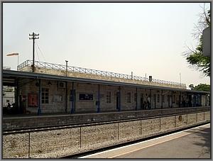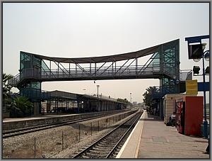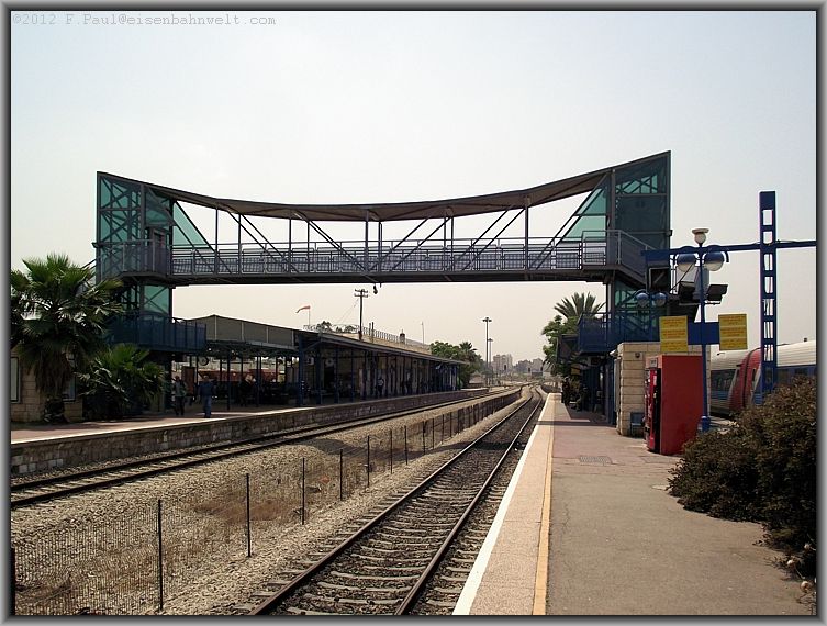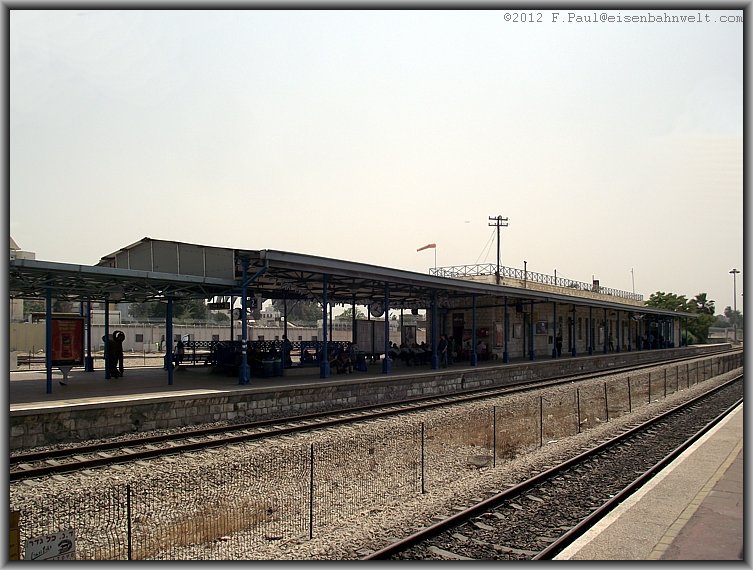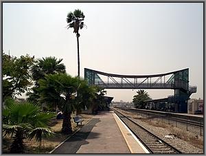 Das an das Gebäude angelehnte breite Bahnsteigdach wurde irgendwann etwas verlängert (Der tiefergelegte Abschnitt!) und bietet Schutz gegen Regen, Hitze und Sandsturm.
