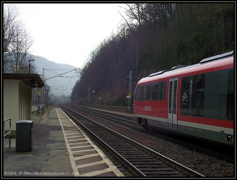 Ich bin inzwischen zum Hp Schmilka-Hirschmühle gelaufen und erwarte den Triebwagen dort. |