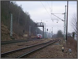 Hurtig entfernt er sich bald darauf, auf das "Fahrt frei" anzeigende Blocksignal 36 zu. |