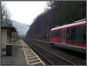 Der Zug hält auf allen Unterwegsbahnhöfen und somit auch hier. |