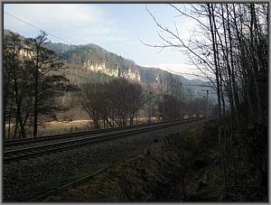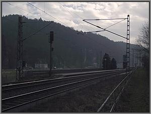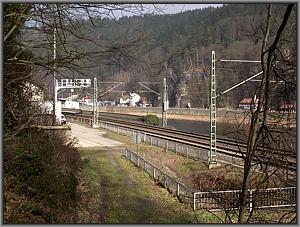 In einer scharfen Kurve wendet sich die Strecke kurz vor Schöna nach Süden, so daß dieser Bahnhof dann in der Sonne liegt.