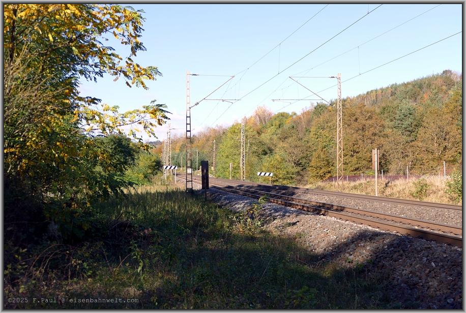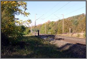Und ein paar Meter weiter unten kann man dann noch einen Blick auf die in Nähe verlaufende Schnellfahrstrecke Fulda-Würzburg erhaschen. |