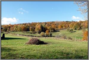 Aber auch abseits der Bahn finden sich hier reizvolle Fotomotive, zumal noch bei herrlichem Herbstwetter! Zunächst ein Blick in Richtung Spessart,