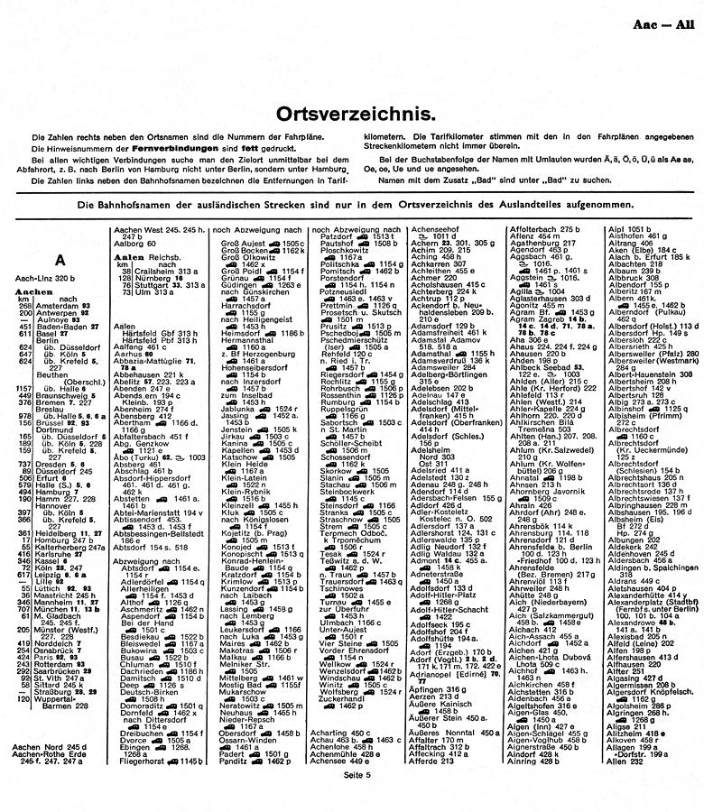 Ortsverzeichnis Aach-Linz - Allen Überstreichen Sie die gewünschte Streckennummer mit der Maus oder klicken Sie auf diese. In dieser Testversion können Sie nur die Tabellen 100, 227 und 1121e aufrufen!