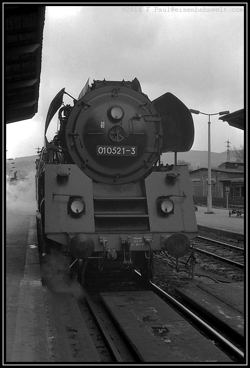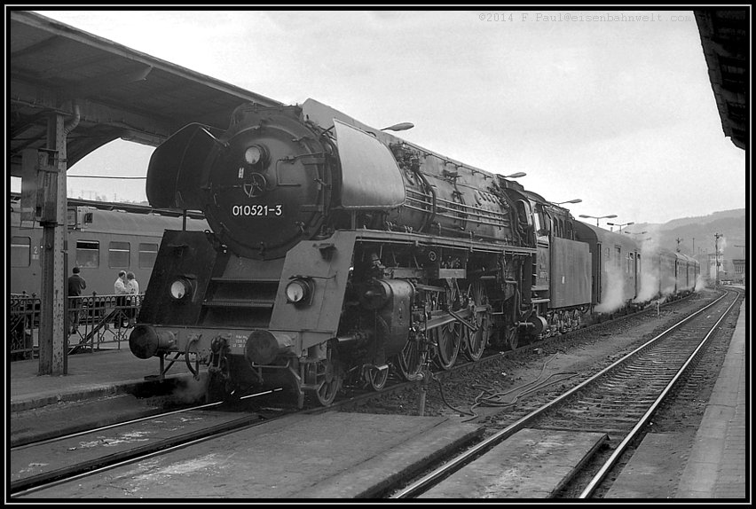 von einer 01 bespannt wird, diesmal von 01 0521. Die Ausfahrt des Zuges erfolgt allerdings erst nach der von E 806, so daß ich davon keine