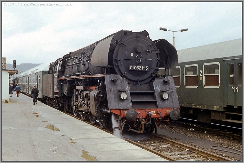 Während die Abfahrtszeit des Personenzuges herannaht, verdrückt sich die ein bißchen wie ein häßliches Entlein aussehende 01 0521