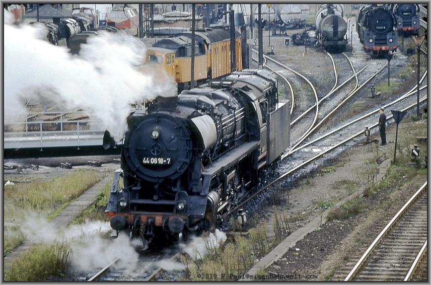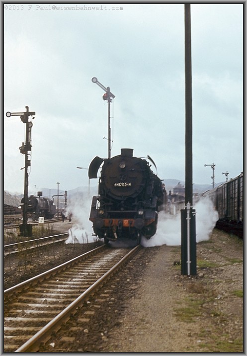 still und leise in Richtung Bw. Ja, und dann bollert die 44'er auch schon los, bei Ausfahrt ohne Geschwindigkeitsbeschränkung aus dem durchgehenden Hauptgleis