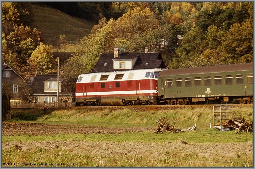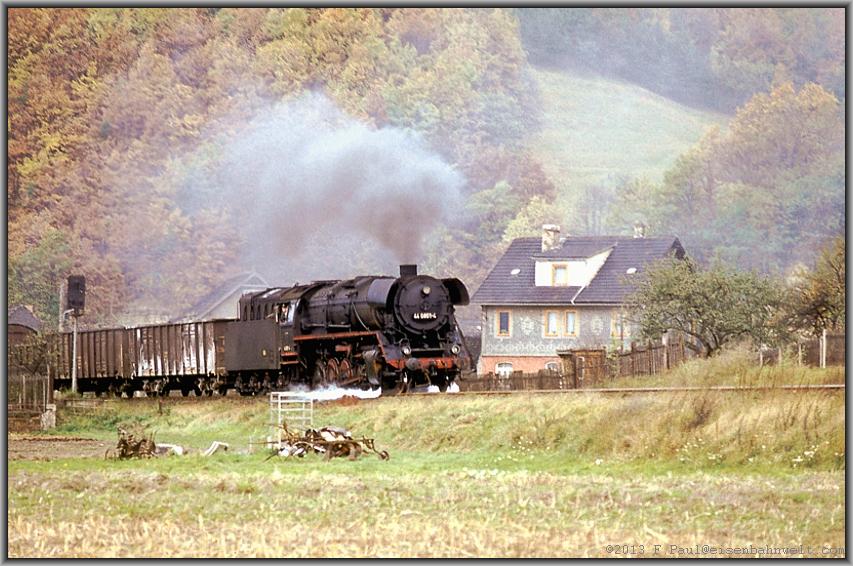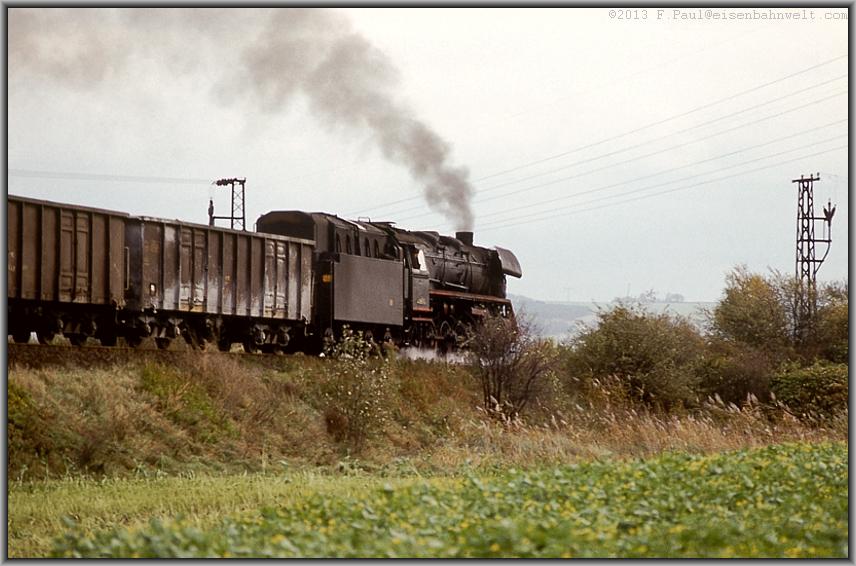 kurz darauf mit einer Übergabe nach Unterwellenborn. Eigentlich für eine schwere Schnellzuglok unter der Würde, so etwas zu befördern. Aber in der Endzeit
