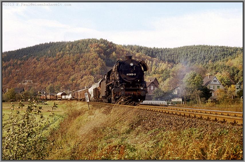So kehrt 44 0618 mit einer Übergabe aus Unterwellenborn zurück und passiert die Brücke auf ihrer Fahrt ins Bw ein weiteres Mal. und auch die vorhin