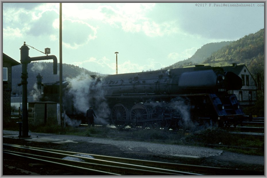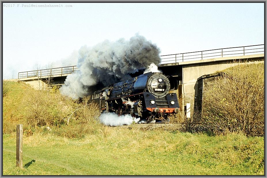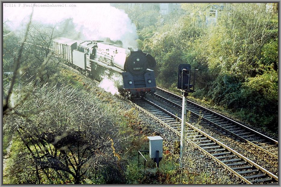 hört man nichts von 01 0519, welche kurze Zeit später mit dem in Camburg übernommenen P 3003 aus Halle (Saale) unter der Brücke hervorbricht. Blitzschnell reagiert,