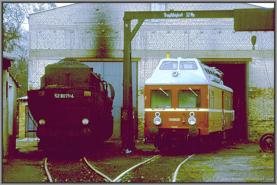 wo immer noch 52 8076, 52 8071 sowie 52 8136 verlockend schmauchen. Kein Problem ist es bei solch kleinen Betriebsstellen, dort hineinzukommen und etwas Braunkohlendampf in die Nase