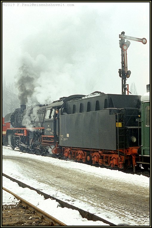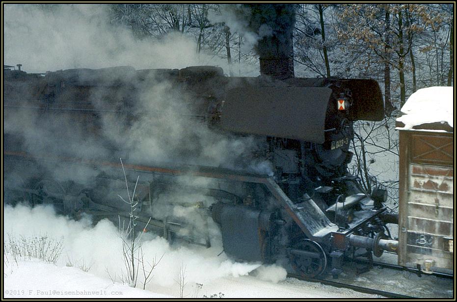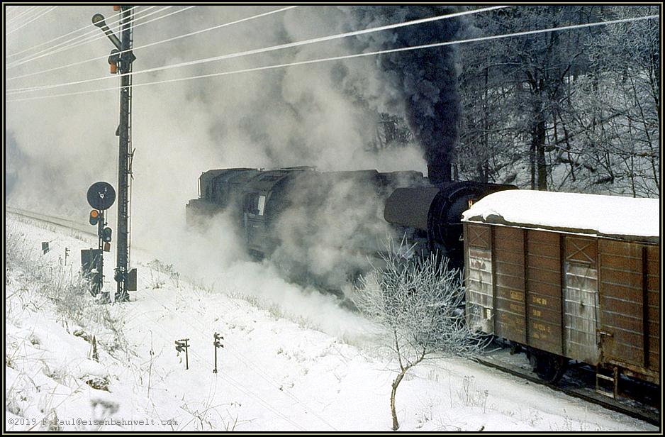 kocht der Heizer fleißig Dampf für den Aufstieg aus dem Elstertal. Als das Zugpaar noch von 01.5 mit Ölfeuerung befördert wurde, war das bestimmt bequemer....