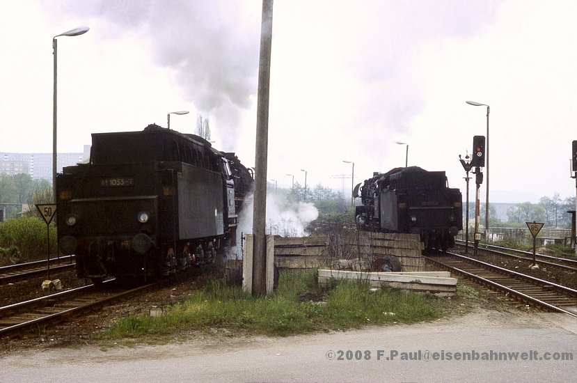 und auf dem Nachbargleis dampft schon 41 1055 heran! Beide Loks rollen an mir vorbei zum Südkopf