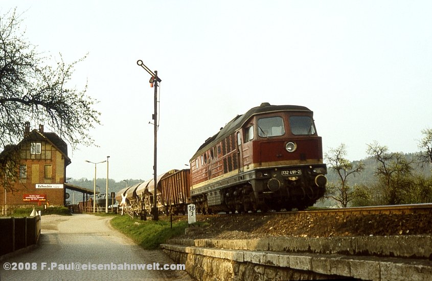 größerer Bedeutung. Schon lange ist 132 491 zu hören, bevor sie hinter dem Haltepunkt auftaucht und an mir vorbeiröhrt! Vor 4 Jahren wär's eine 44'er gewesen... |