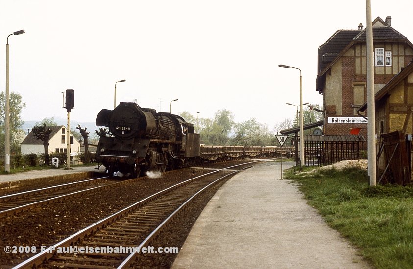 Da tröstet mich 41 1125 doch ein wenig, welche in der Gegenrichtung mit dem fast vollständig aus leeren Flachwagen