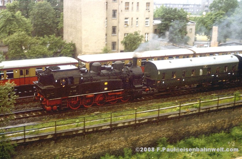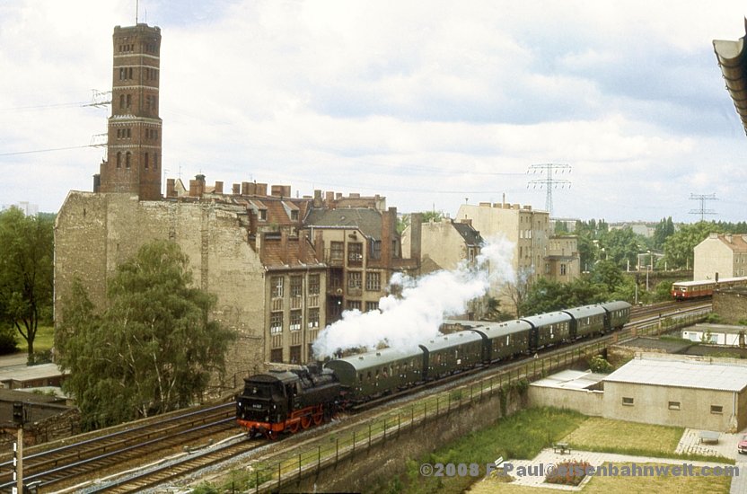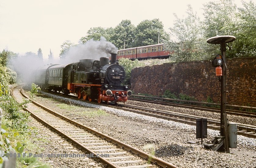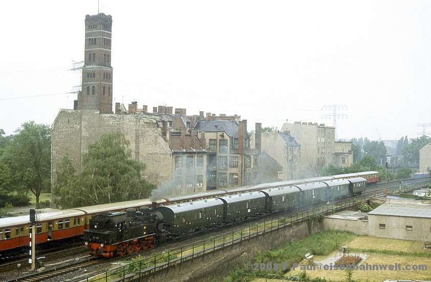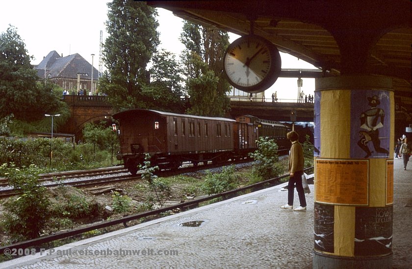 ob die Bügel seiner E-Lok heil unter der Ringbahnbrücke hindurchkommen. Aber irgendwie muß das etwas lädiert aussehende Stück ja zum Wriezener Bahnhof hingekommen sein!