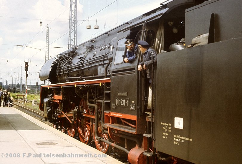 Zufrieden schauen die beiden Schwarzen aus dem Führerhaus der 01 1531, als der Zug dann endlich den Bahnhof erreicht hat. Immer wieder schön