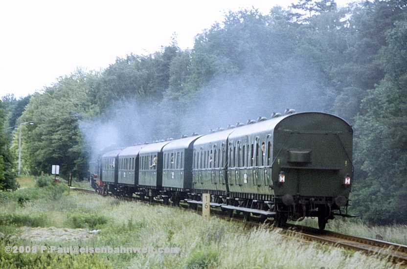 steht der abfahrbereite Sonderzug bereit, heute bespannt mit 74 1230. Wegen des fehlenden Bahnsteigs hat man