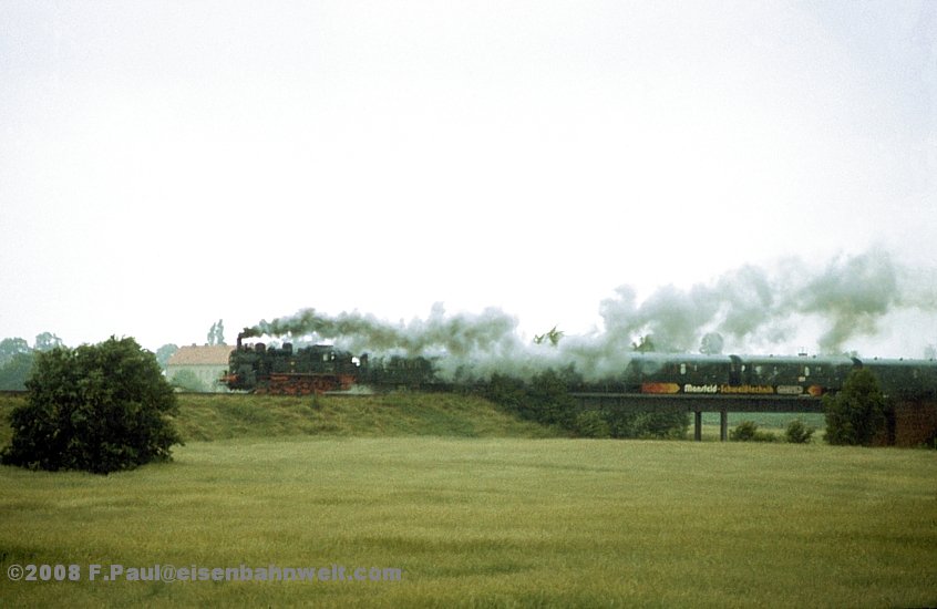 auch schon 1985 recht heruntergekommenen Ortes einsehen. Etwa 2 Stunden später passiert der Sonderzug auf seiner Rückfahrt diese Stelle mit dem Einfahrvorsignal