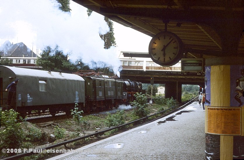 Das Motiv am Bahnhof Nöldnerplatz gefiel mir so gut, daß ich am 15.06.85 nochmals den Treppenaufgang aufsuche, diesmal, um den Vormittagszug mit 64 007