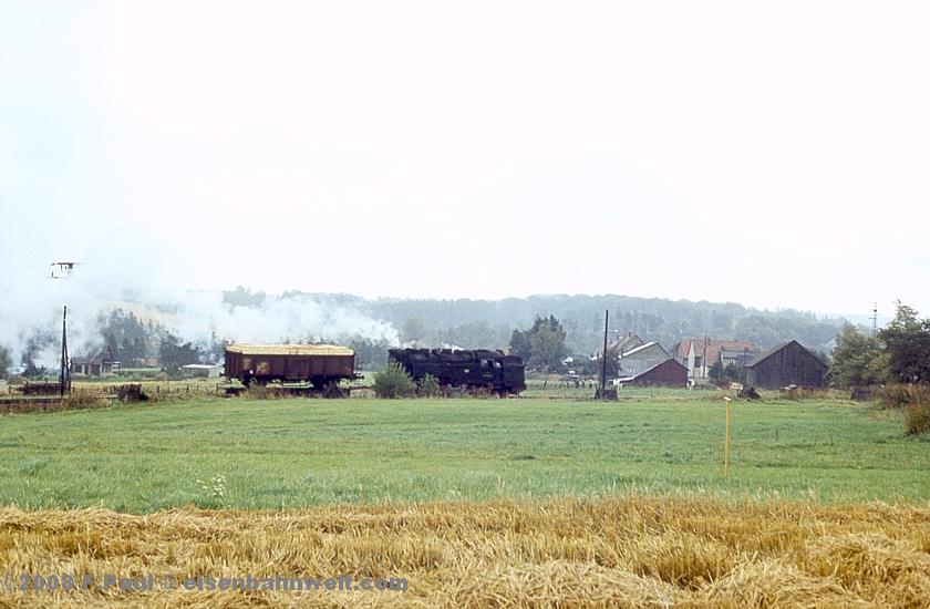 Und: Es geht weiter: Etwa 10 Minuten später dringen die nächsten Abdampfschläge aus dem Behretal hinauf und kurze Zeit später rollt 99 7231 unter Volldampf mit