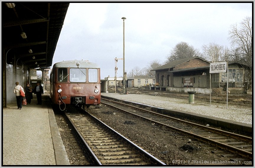 Was nun? Gegen 12.00 Uhr ist hier die nächste Dampflok zu erwarten, diese will ich aber lieber in Blumenberg erleben, diesem faszinierenden Knotenbahnhof, wo drei Nebenbahnen an die Hauptstecke Magdeburg-Halberstadt anstoßen. P 8448 soll mich dorthin bringen, pünktlich um 10.58 Uhr verläßt dieser Langenweddingen und befördert mich mit achtminütiger Fahrt ans Ziel. |