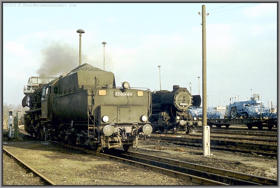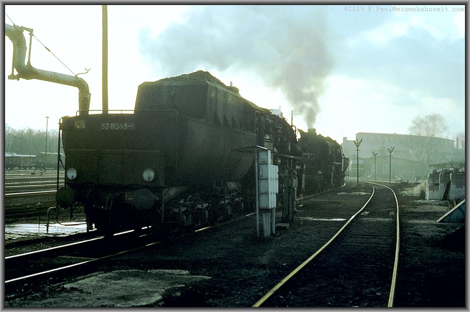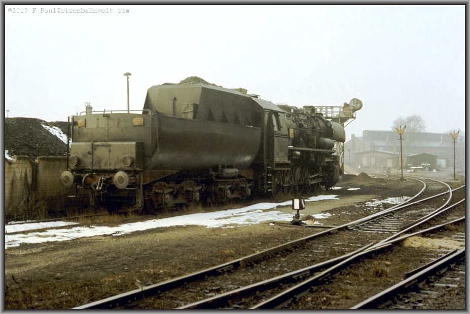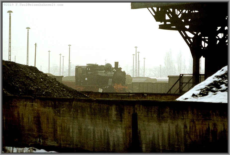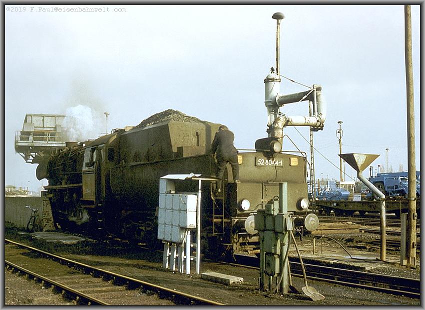 Die beiden Dampfer sind mit ihren Betonmischzügen inzwischen ausgerückt und einsam und kalt hält nur noch 52 8039 die Stellung am Kohlenbansen.