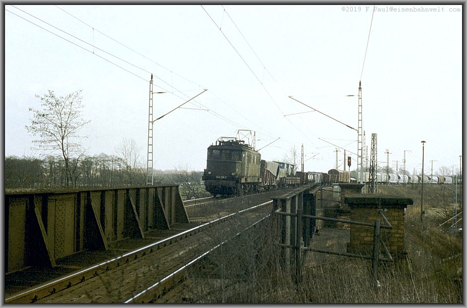 Falkenberg (Elster) W 21 zum Umspannen ein. Und sie hat es eilig, zurück ins Heimat-Bw Roßlau zu kommen! So wird Dg 52652 gleich "vor Plan" über das Kreuzungsbauwerk