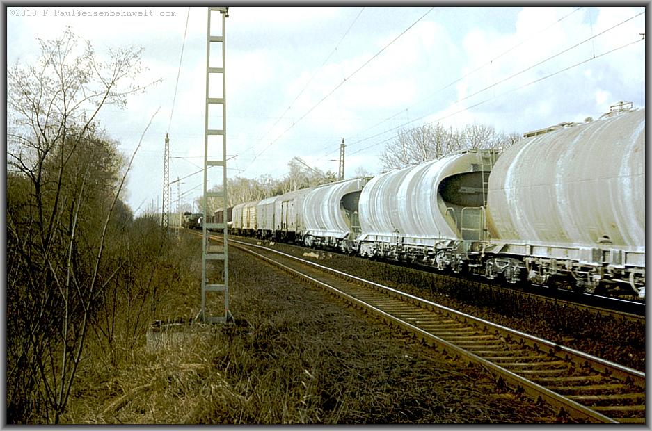 als das Poltern der Wagen über die Brücke aufhört, ist von der Lok schon nichts mehr zu sehen. Der Lokführer versucht dann bestimmt schon, das Vorsignal vom Abzw Beyern