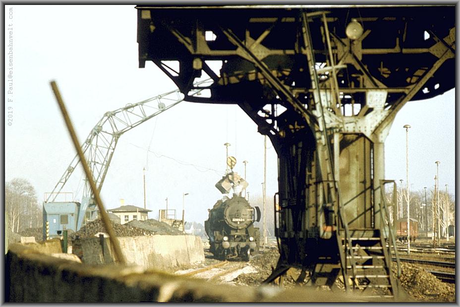 nachfüllen. Ein kleiner Kohlenkran erledigt diese Arbeit jetzt, der vorne im Bild erkennbare Hochbunker wird nicht mehr genutzt, für zwei Lokomotiven lohnt sich das nicht mehr....