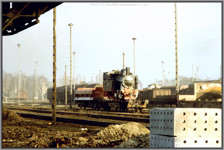 und wartet dort nach Fristablauf im Jahr 1997 auf ihr weiteres Schicksal. Aber auch eine weitere kalte Dampflok ist hier zu erspähen: 99 6101 der Harzquerbahn macht